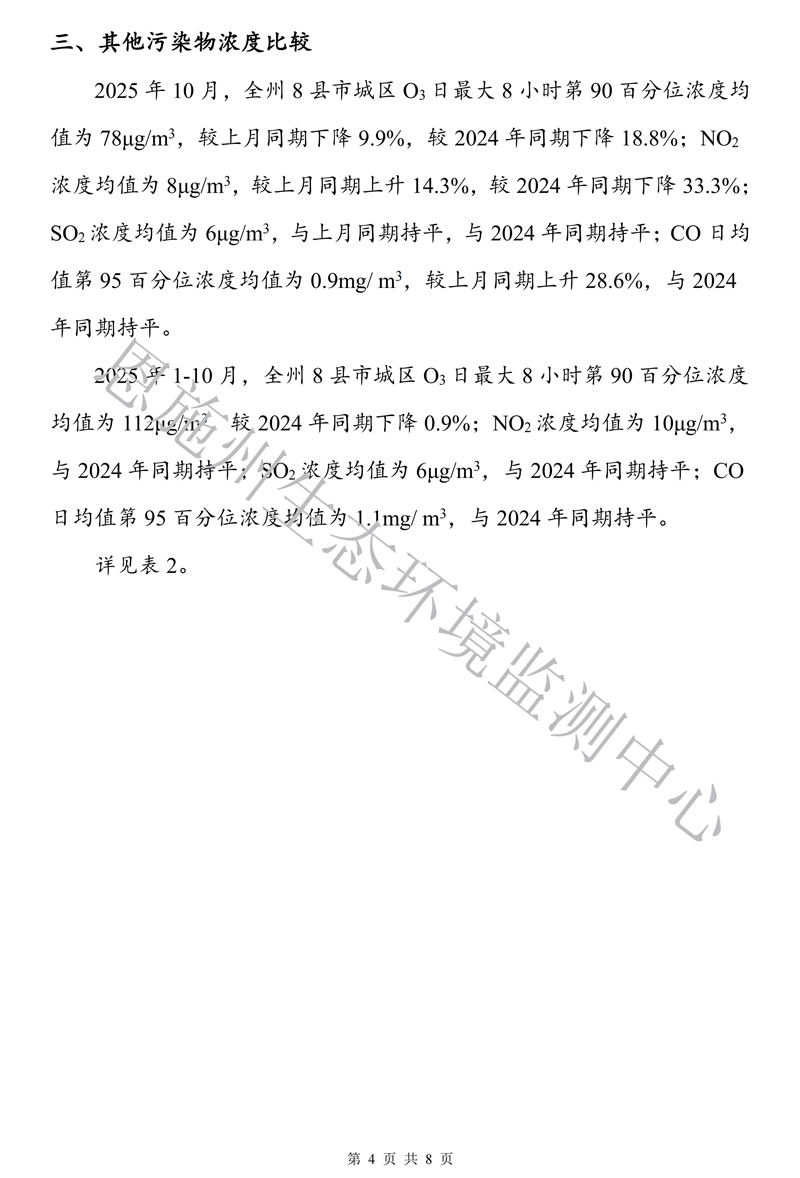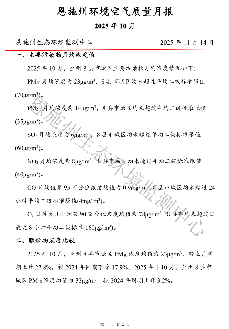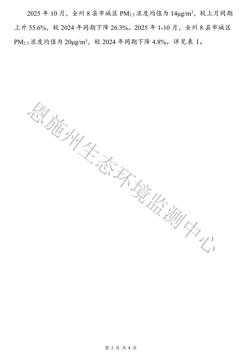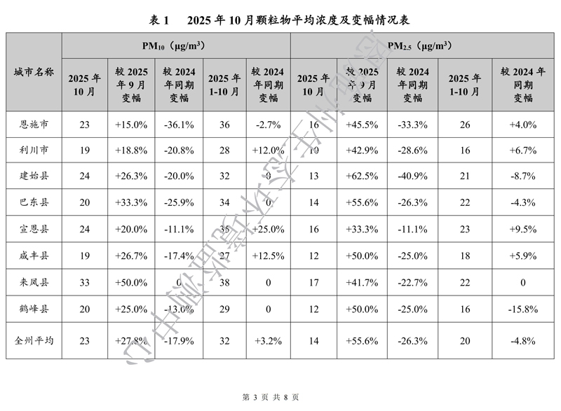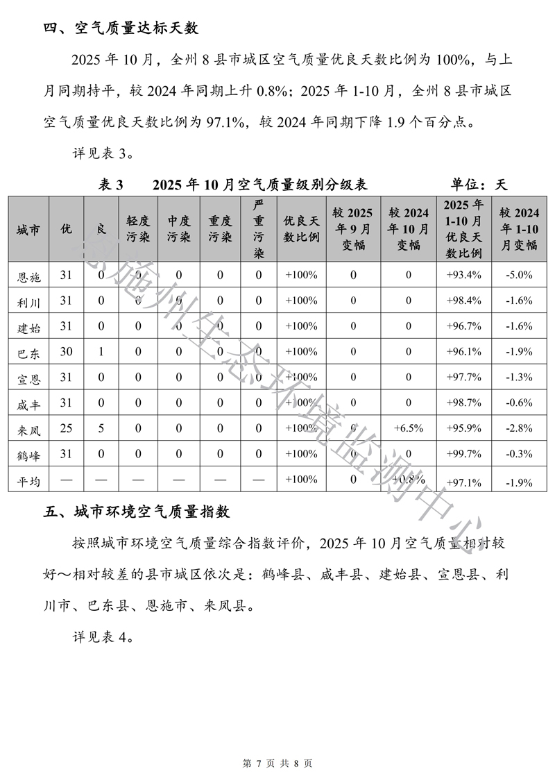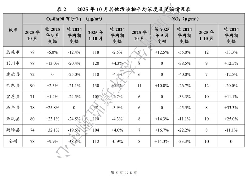 恩施州环境空气质量月报(2025年10月)