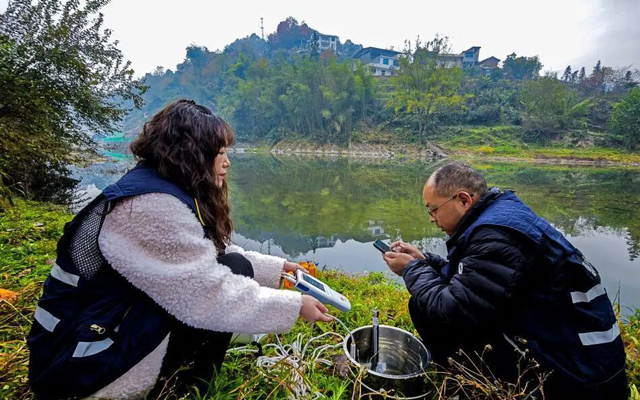 画面定格了恩施州生态环境监测中心的监测员在建始县弓箭岩水质监测断面开展工作的场景。镜头里,监测员穿行在草木繁茂的河岸,携手调试监测仪器、俯身检测水样指标,便携设备与采样瓶在青草地的映衬...