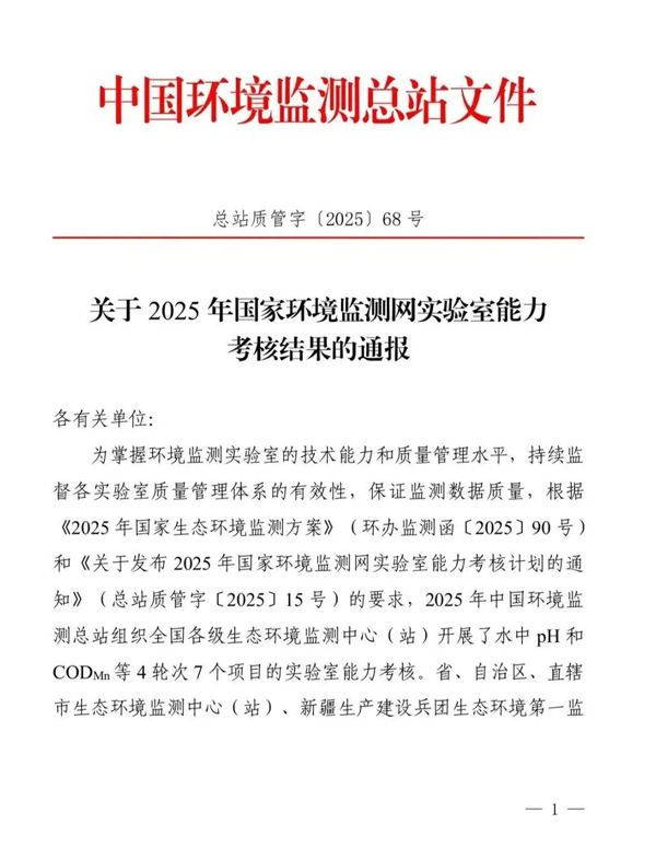 近日,中国环境监测总站通报2025年国家环境监测网实验室能力考核结果,湖北省生态环境厅恩施州生态环境监测中心(以下简称恩施州监测中心)在全年4轮次7个项目的国家能力验证中均获“合格”评价,再次被授予“2025年实验室能力考核优秀单位”称号。此外,中心自愿参加2个国家考核项目亦全部顺利通过。“十四五”期间,恩施州监测中心共参加国家16轮次31个项目的考核,考核结果全部合格,五年内四次获得年度“实验室能力考核优秀单位”。