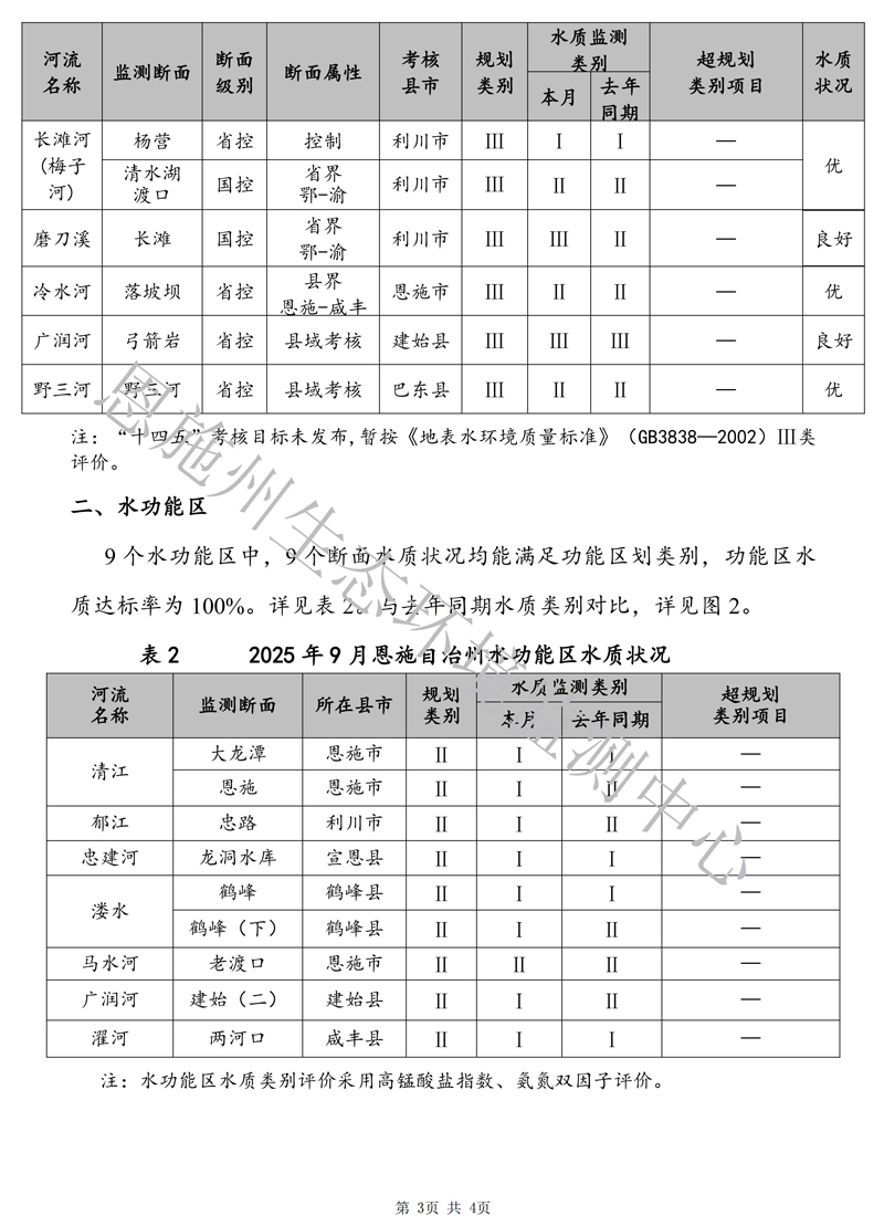 恩施州地表水环境质量月报(2025年9月)
