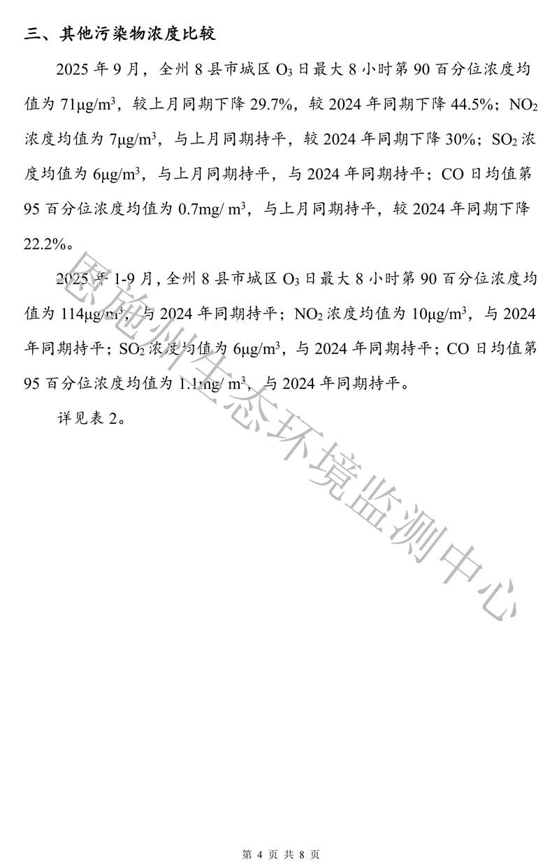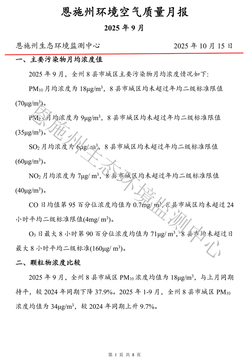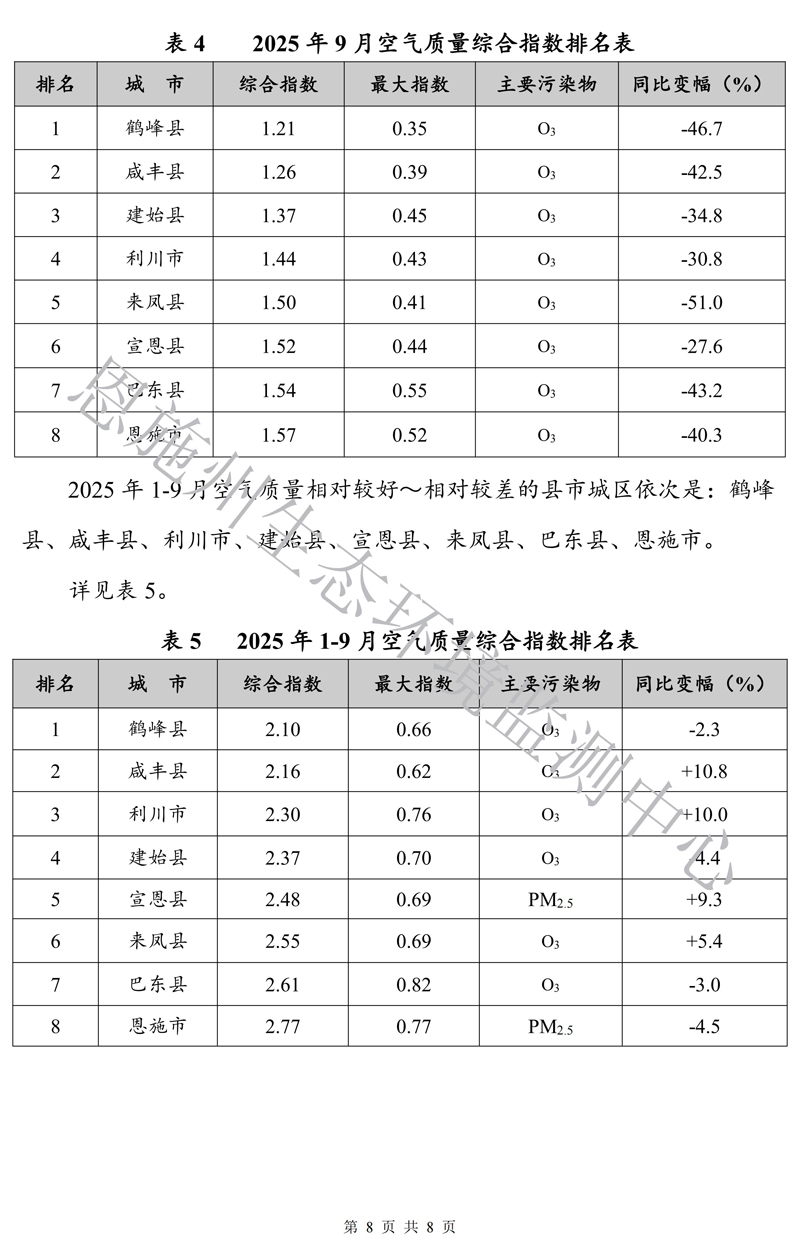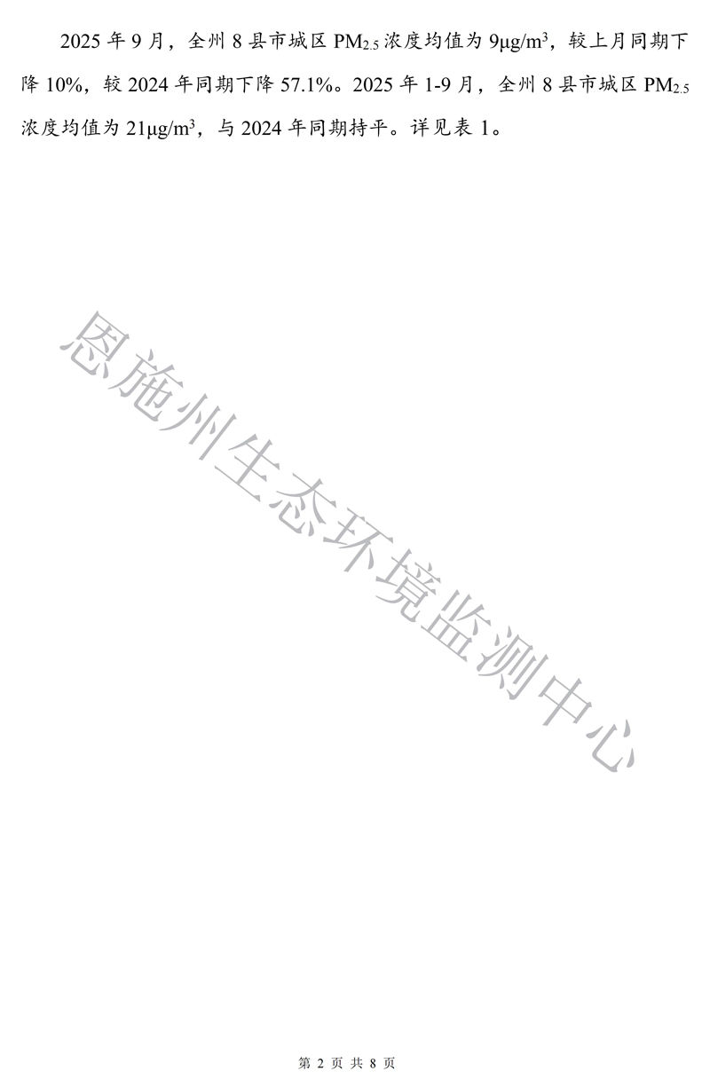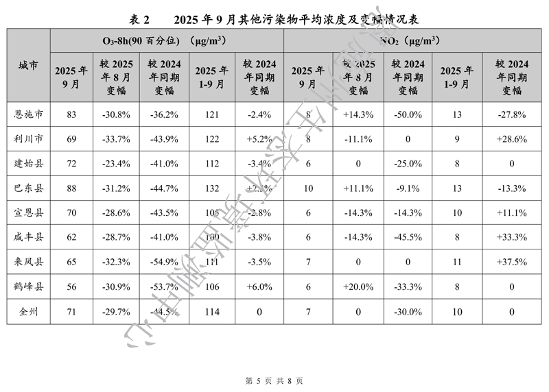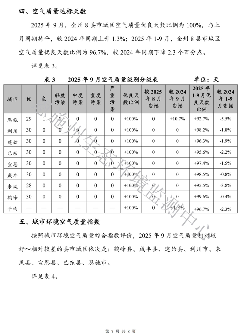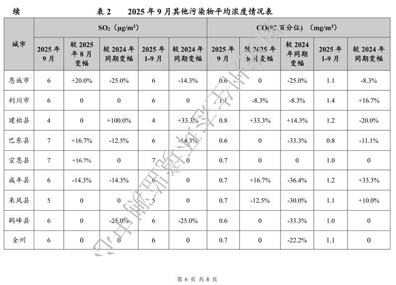 恩施州环境空气质量月报(2025年9月)